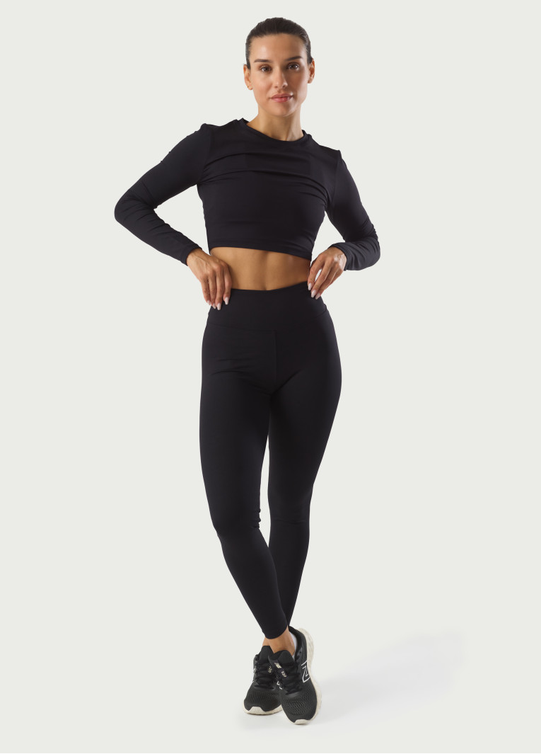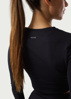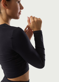 Camisola crop justa de manga comprida. Confortável e resistente.