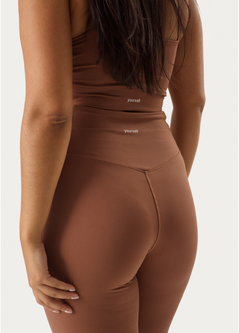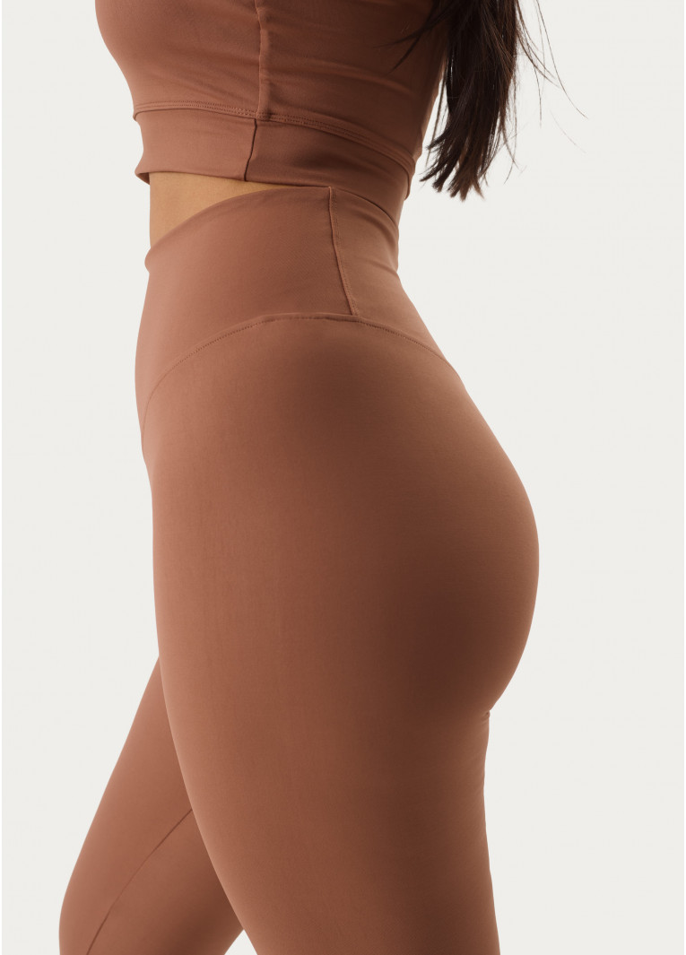 Legging com as costuras do cinto em forma de V para realçar a silhueta. Comprimento até ao tornozelo. Confortável, resistente e elástica.