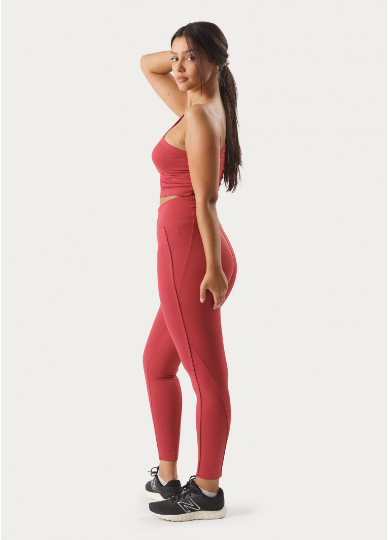 Legging com costuras na parte lateral para realçar a silhueta. Comprimento até ao tornozelo. Confortável, resistente e elástica.