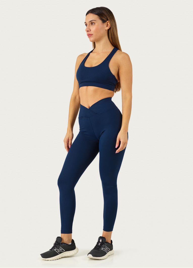 Legging com a cintura em forma de V e comprimento até ao tornozelo. Confortável, resistente e elástica.