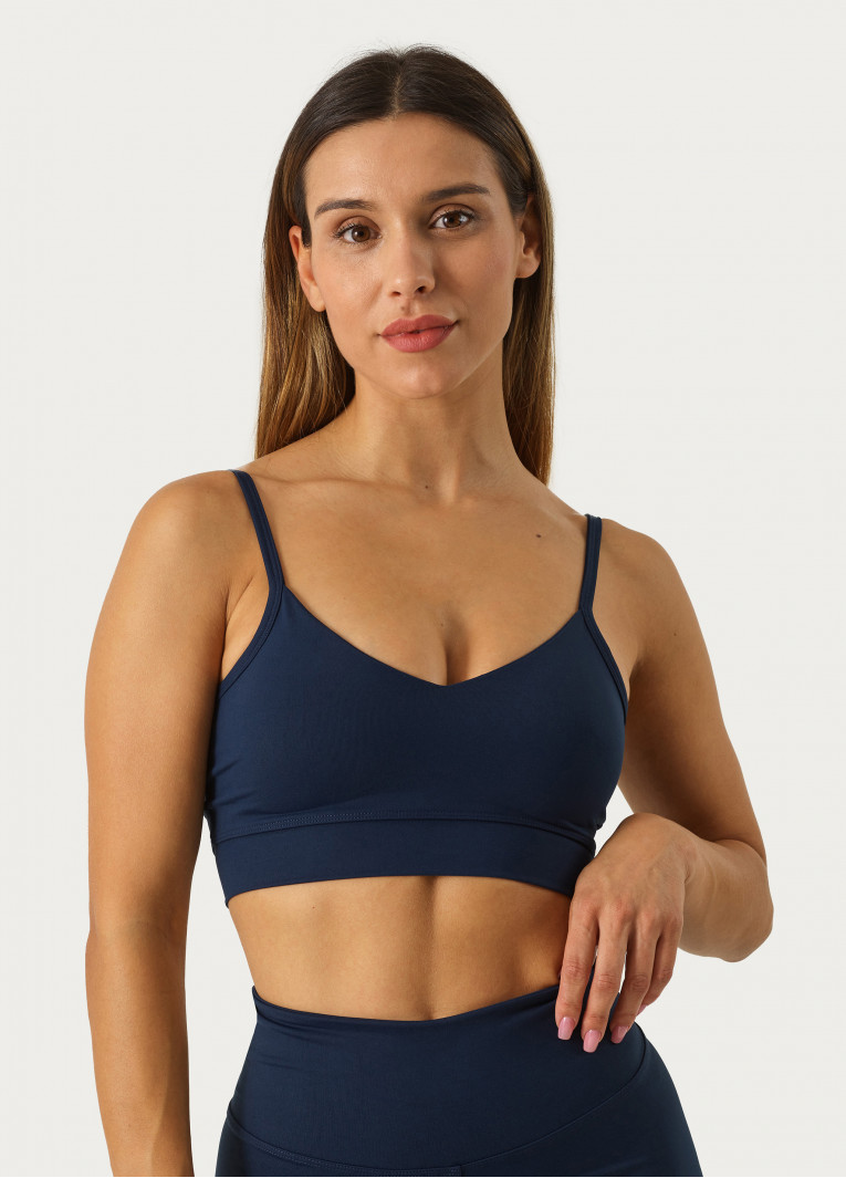 Sutiã com alças e decote em V. Contém copas mas são removíveis. Confortáveis e resistentes. Bom suporte.
